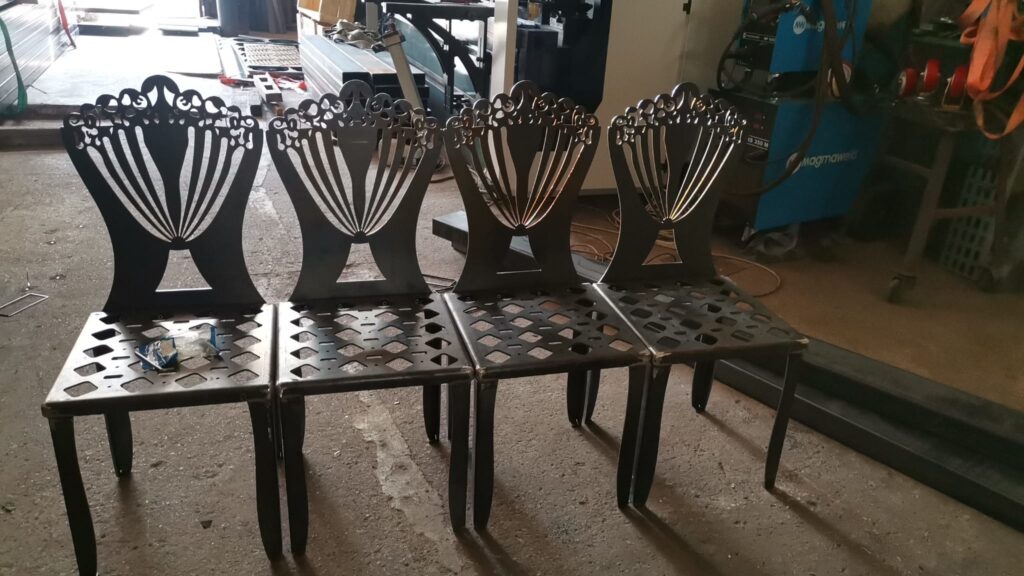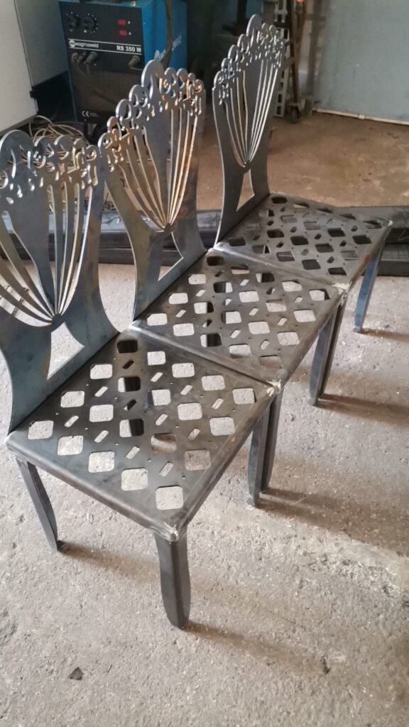 Kişiye özel dilediğiniz kalınlıkta, renkte ve motifte sandalye imal etmekteyiz. CNC Metal Lazer Kesim ile tasarımları hatasız olarak ürüne dönüştürebiliyoruz. Yine tam otomatik makine/ekipman ile büküm ve kaynak işlemleri de tarafımızdan yapılmaktadır.